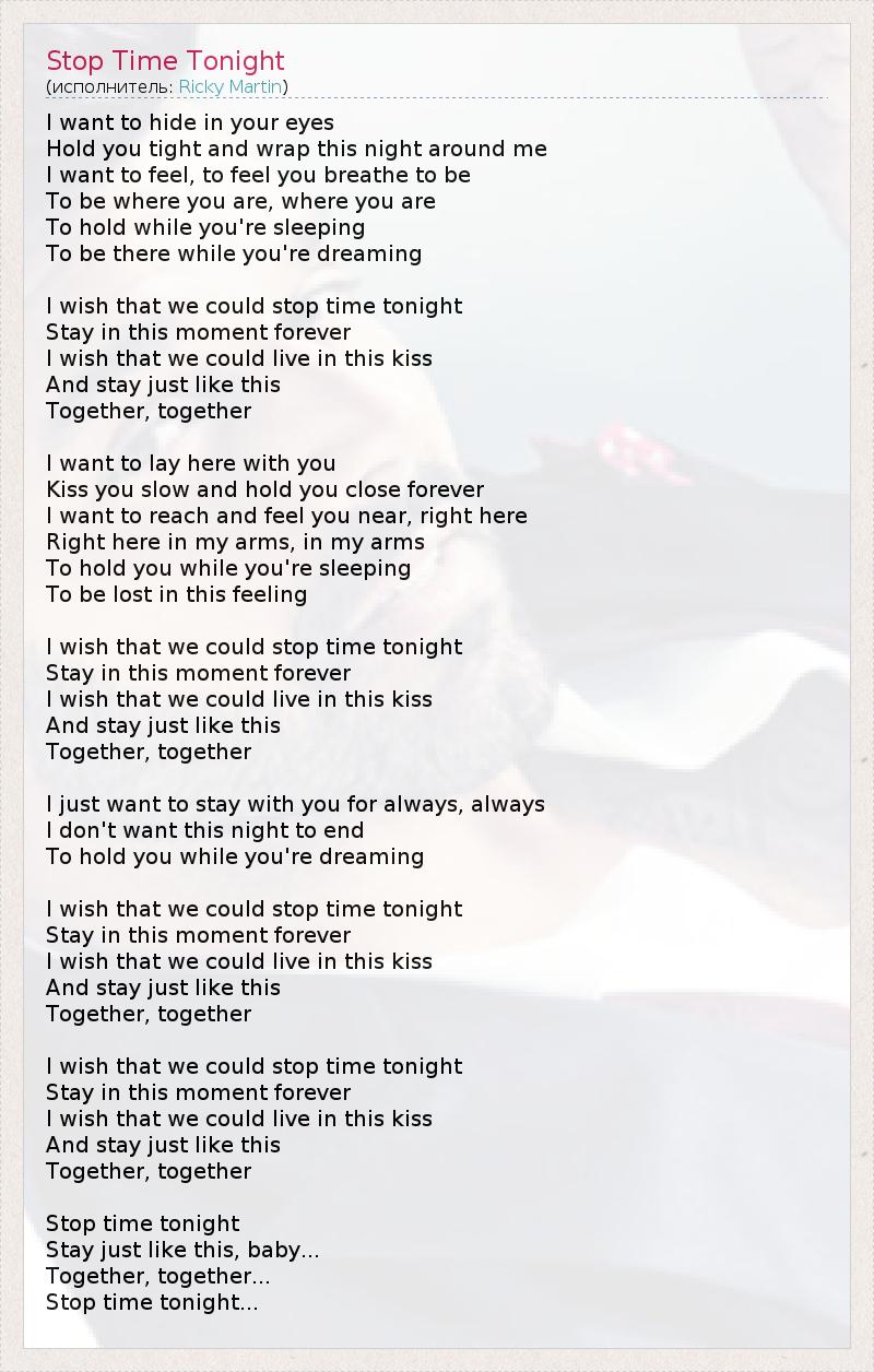 А как ты думаешь, о чем песня "Stop Time Tonight" ?