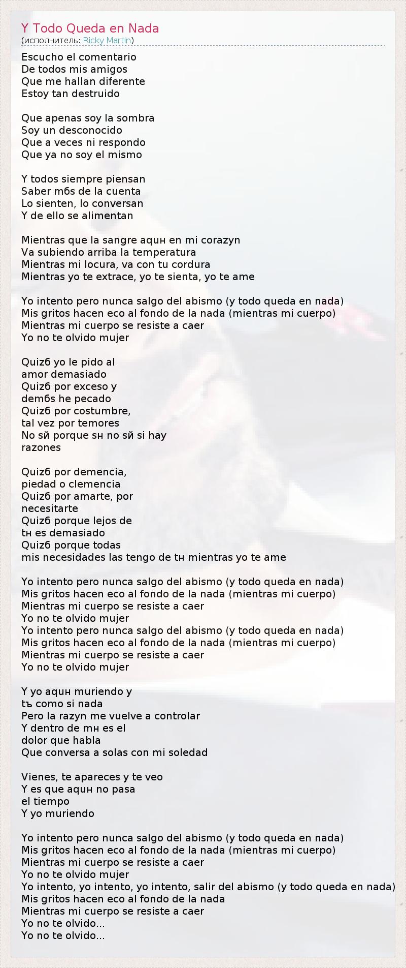 А как ты думаешь, о чем песня "Y Todo Queda en Nada" ?