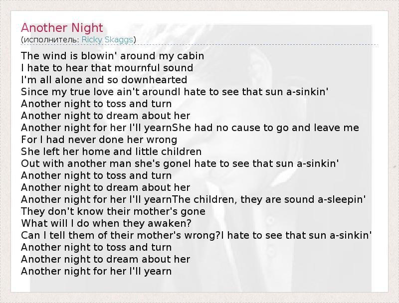 А как ты думаешь, о чем песня "Another Night" ?