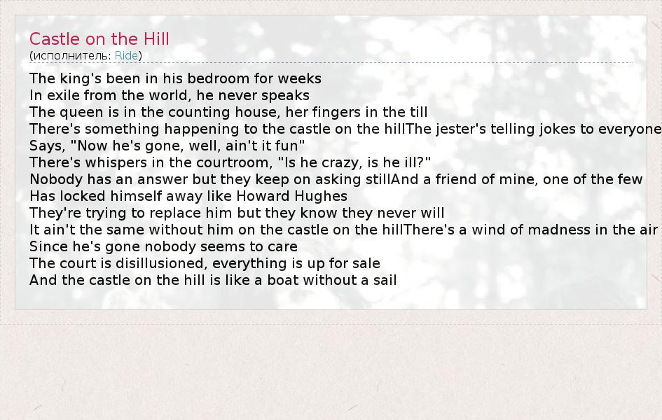 А как ты думаешь, о чем песня "Castle on the Hill" ?