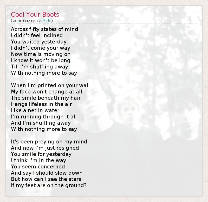 А как ты думаешь, о чем песня "Cool Your Boots" ?