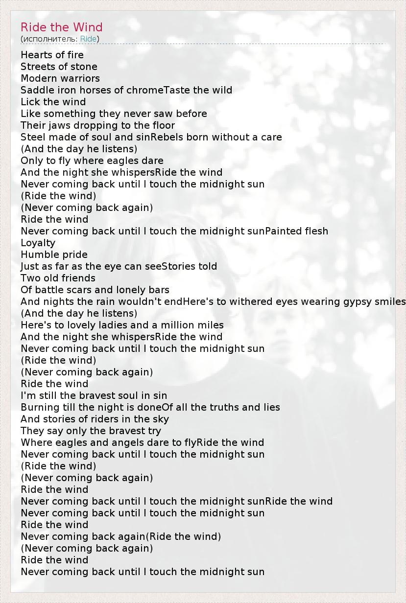 А как ты думаешь, о чем песня "Ride the Wind" ?