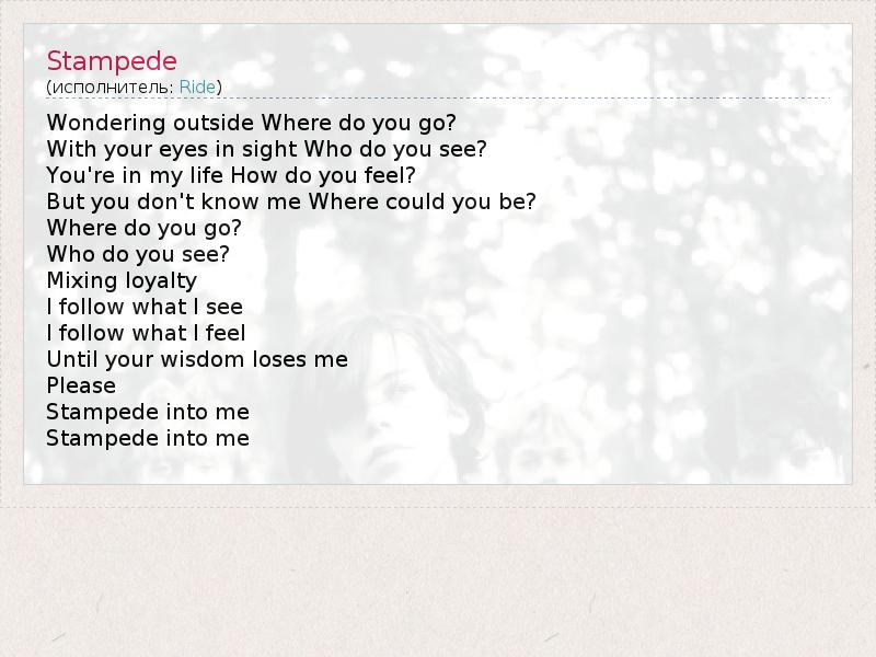 Это интересно:С самых первых своих записей Ride заложили основу своего фирменного звучания - уникальную стену звука, основанную на искаженном звучании гитар - чем-то схожую со звучанием My Bloody Valentine, но с более простым и более прямым подходом к мелодике. Музыкальному стилю групп, имевших такое же сокрушительно громкое нео-психоделическое звучание, британской прессой было присвоено название shoegazing. Это... продолжение