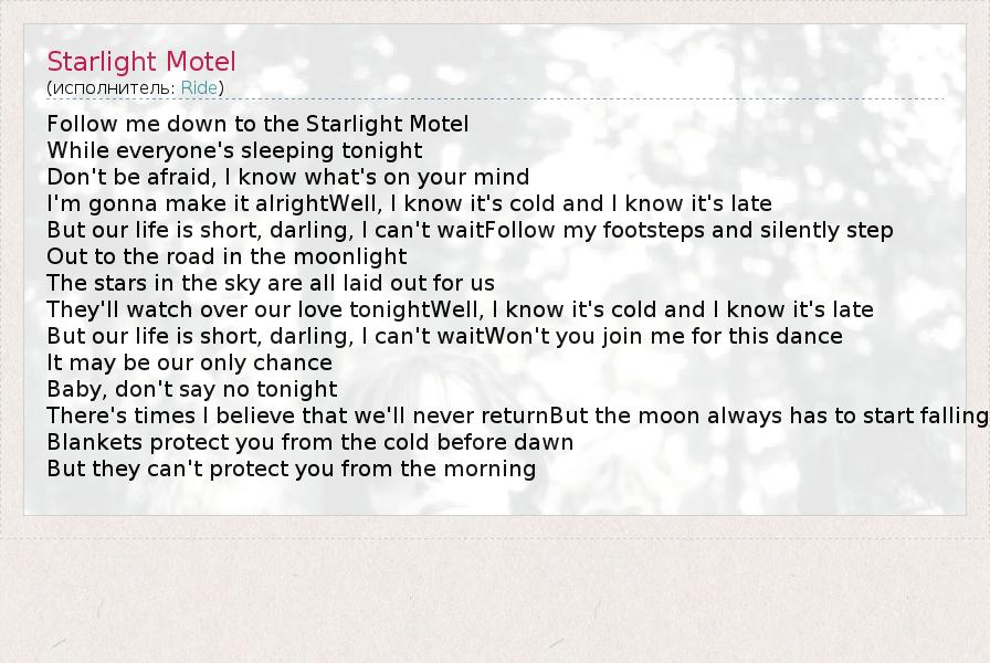 А как ты думаешь, о чем песня "Starlight Motel" ?