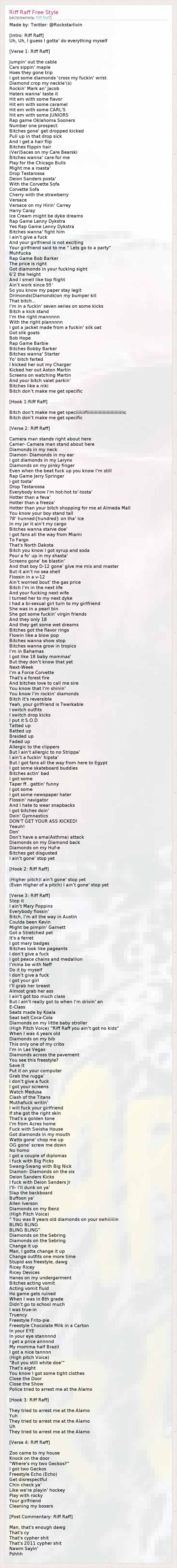 А как ты думаешь, о чем песня "Riff Raff Free Style" ?