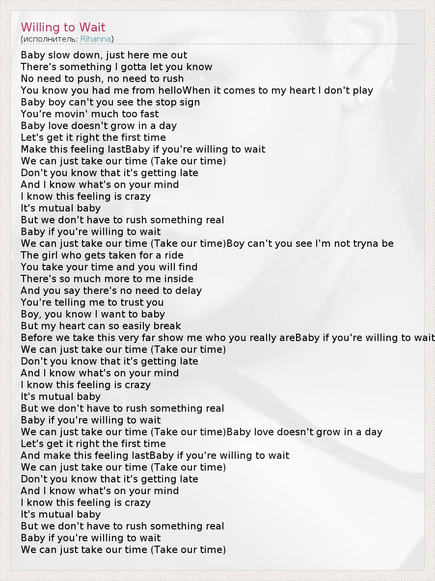 А как ты думаешь, о чем песня "Willing to Wait" ?