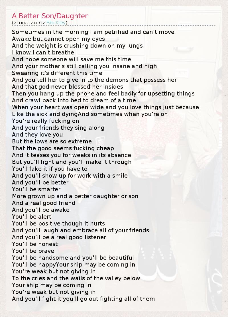 А как ты думаешь, о чем песня "A Better Son/Daughter" ?