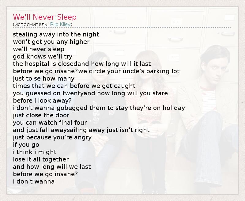 А как ты думаешь, о чем песня "We'll Never Sleep" ?