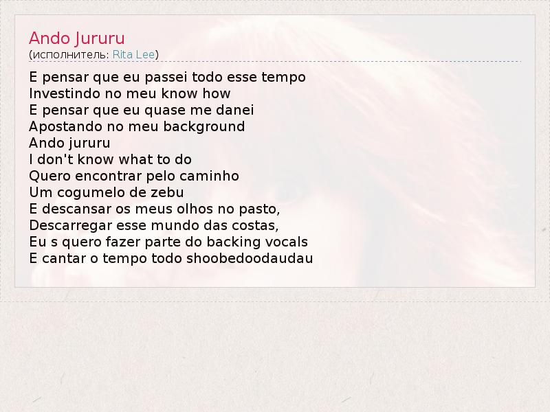 А как ты думаешь, о чем песня "Ando Jururu" ?