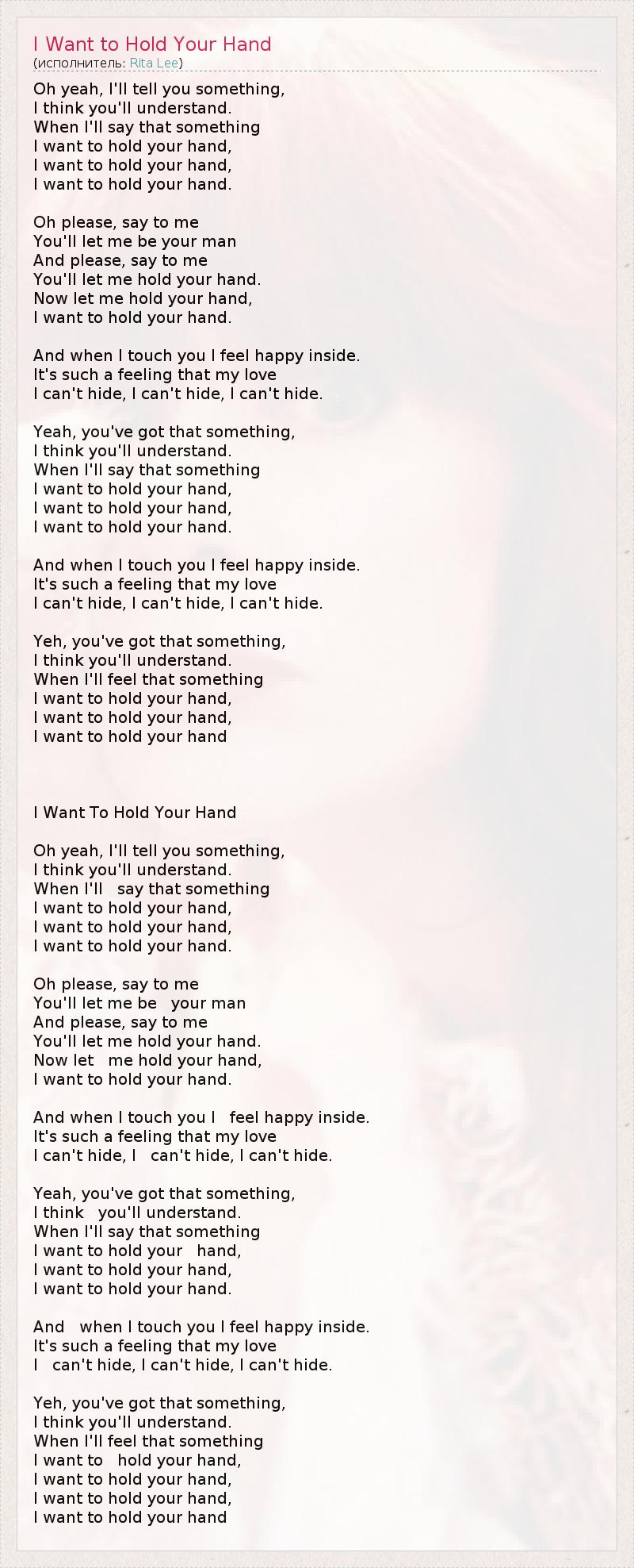 ГлавнаяИсполнителиRita LeeI Want to Hold Your Hand