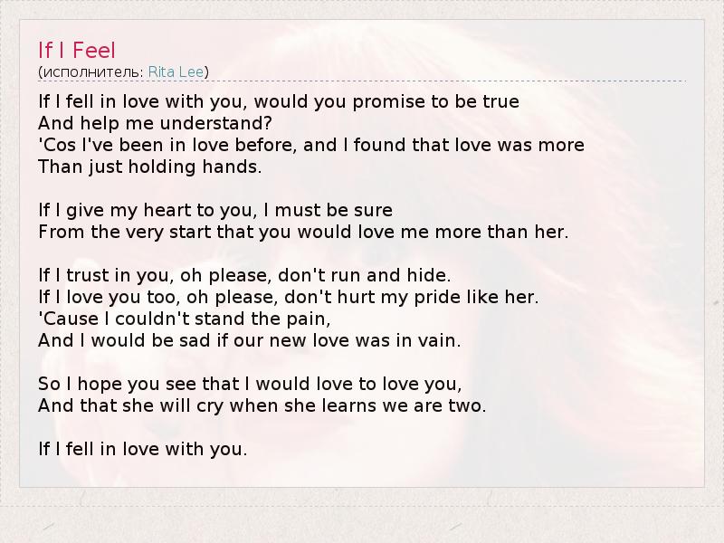Если я влюбился в вас , вы бы обещать , чтобы быть правдой