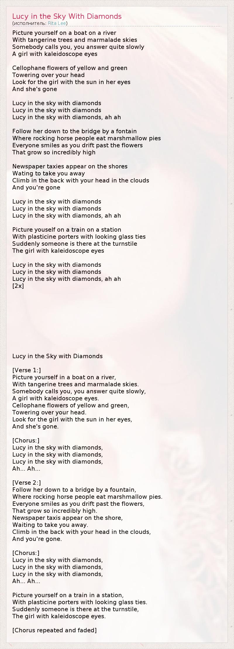 ГлавнаяИсполнителиRita LeeLucy in the Sky With Diamonds