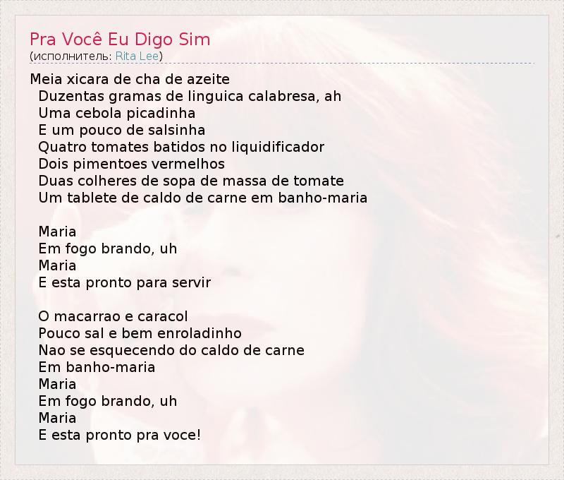 ГлавнаяИсполнителиRita LeePra Você Eu Digo Sim