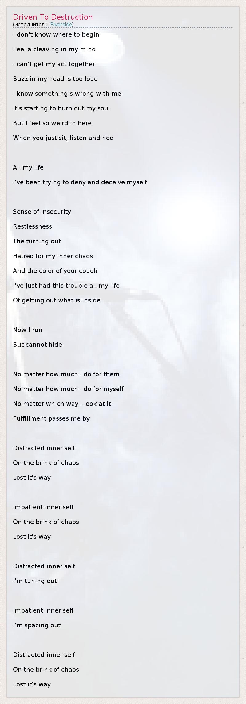 А как ты думаешь, о чем песня "Driven To Destruction" ?