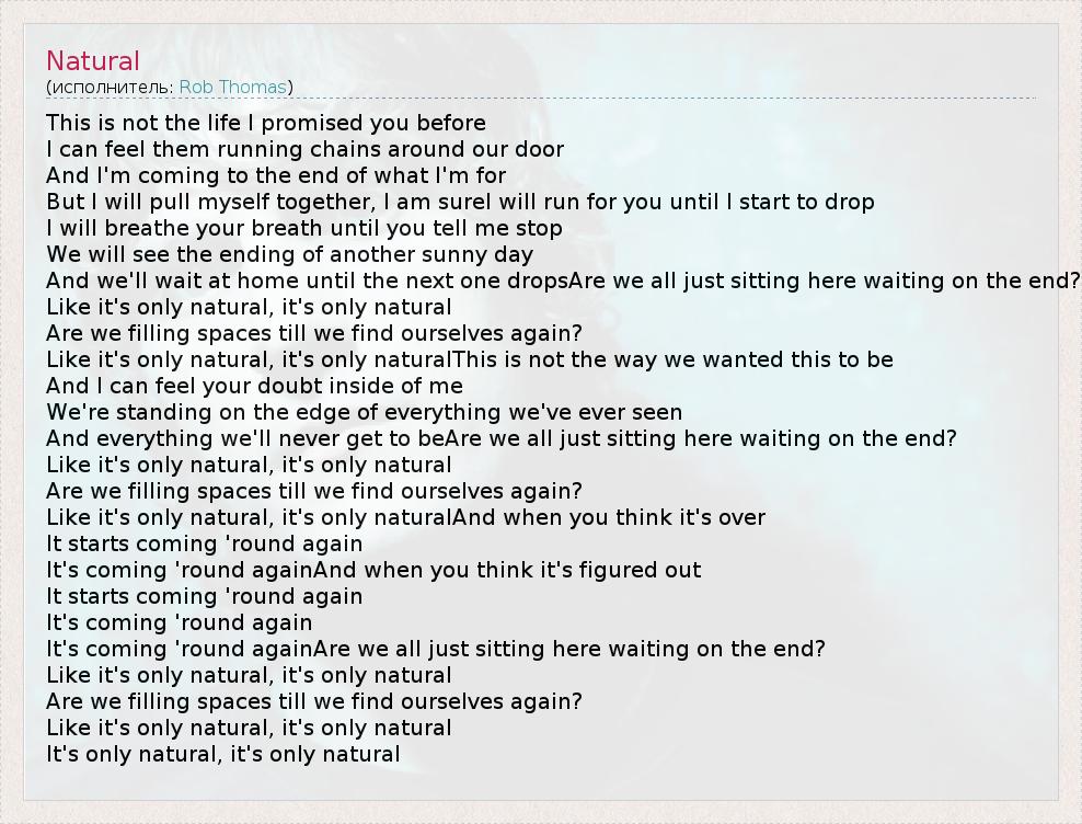 Like it's only natural, it's only natural