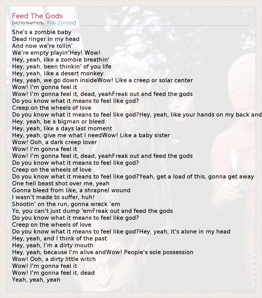 Wow! I'm gonna feel it, dead, yeahFreak out and feed the gods