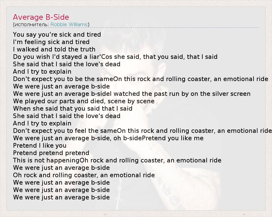 А как ты думаешь, о чем песня "Average B-Side" ?