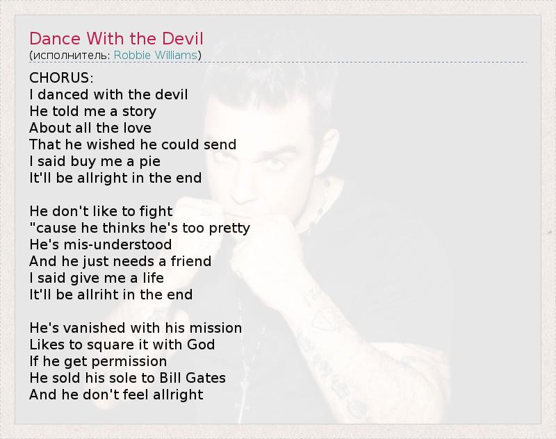 А как ты думаешь, о чем песня "Dance With the Devil" ?