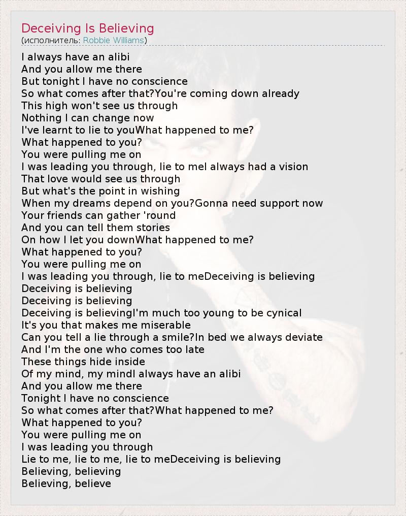 А как ты думаешь, о чем песня "Deceiving Is Believing" ?