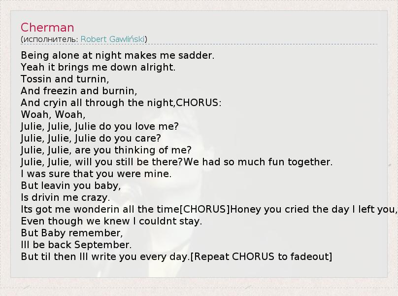 But til then Ill write you every day.[Repeat CHORUS to fadeout]