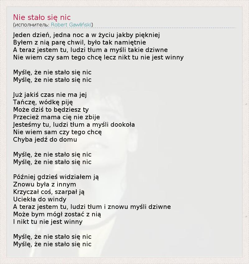А как ты думаешь, о чем песня "Nie stało się nic" ?