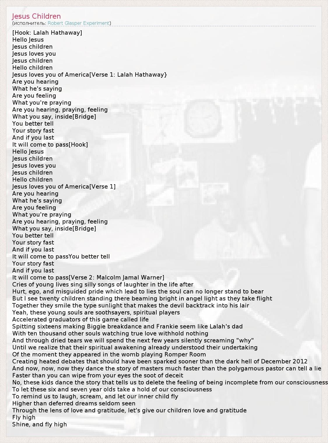 А как ты думаешь, о чем песня "Jesus Children" ?