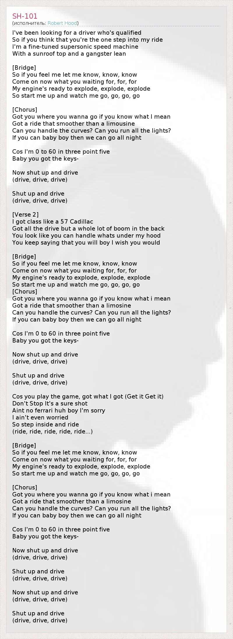 Если ты считаешь себя именно таким, залезай ко мне в тачку.