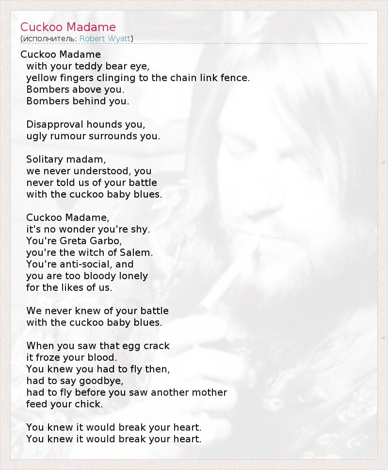 А как ты думаешь, о чем песня "Cuckoo Madame" ?