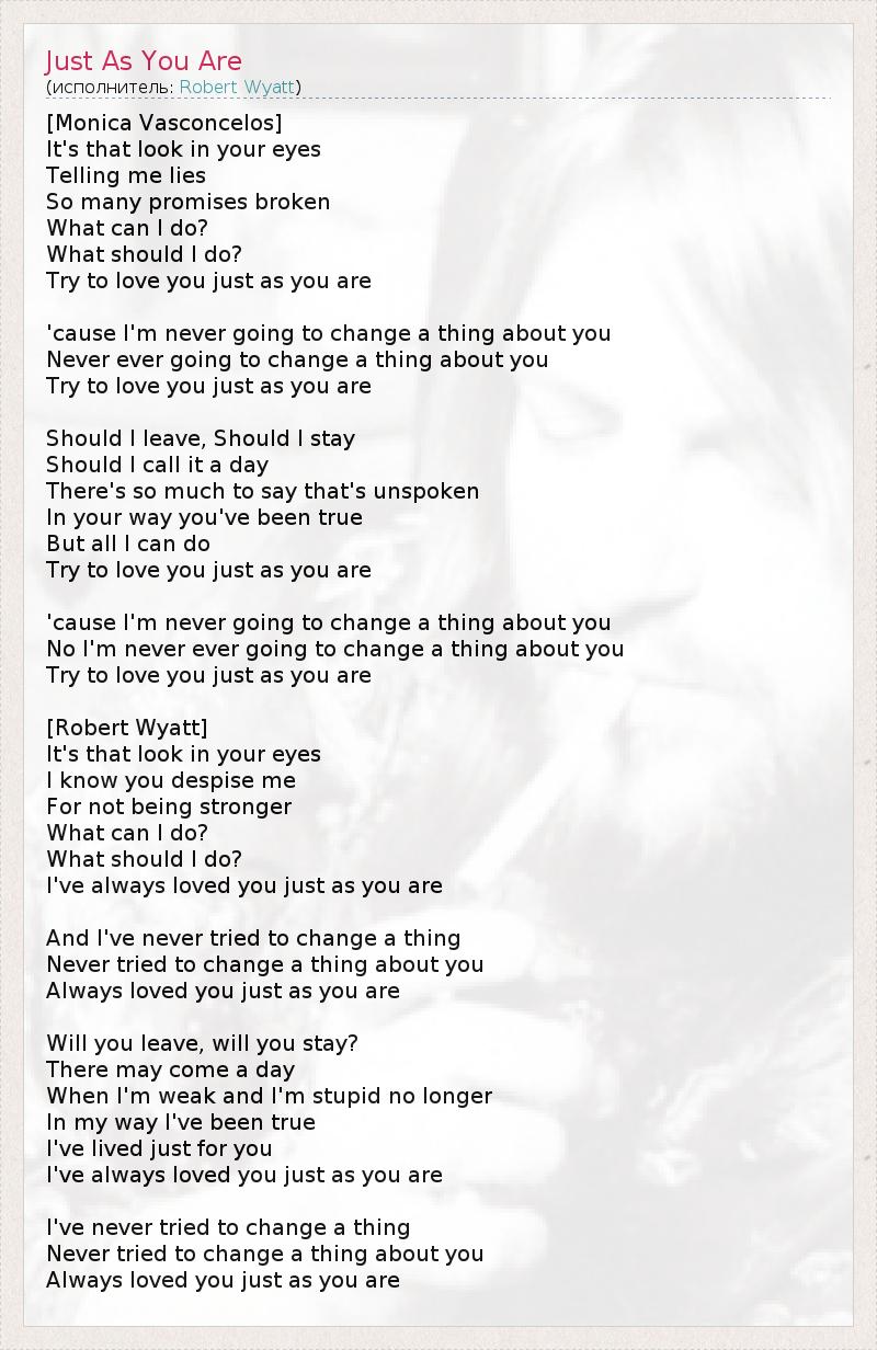 А как ты думаешь, о чем песня "Just As You Are" ?