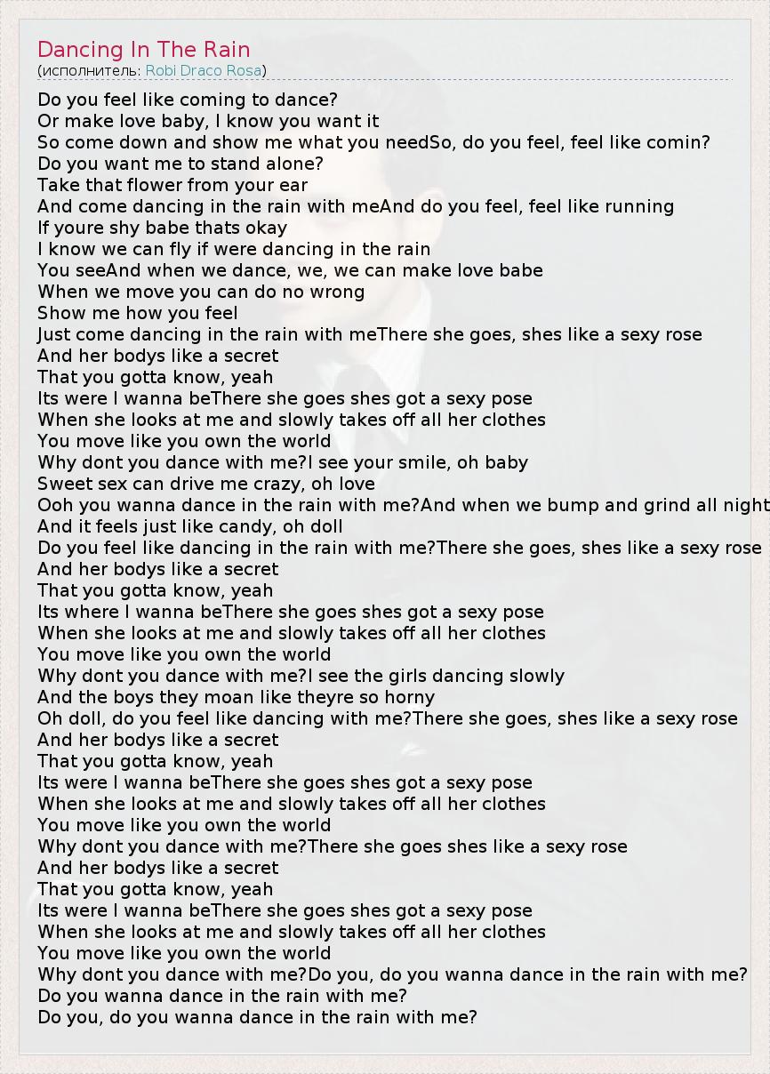 Do you feel like dancing in the rain with me?There she goes, shes like a sexy rose