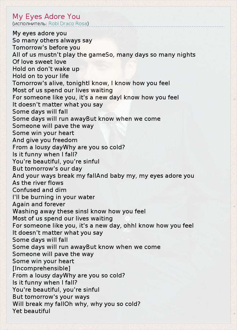 А как ты думаешь, о чем песня "My Eyes Adore You" ?