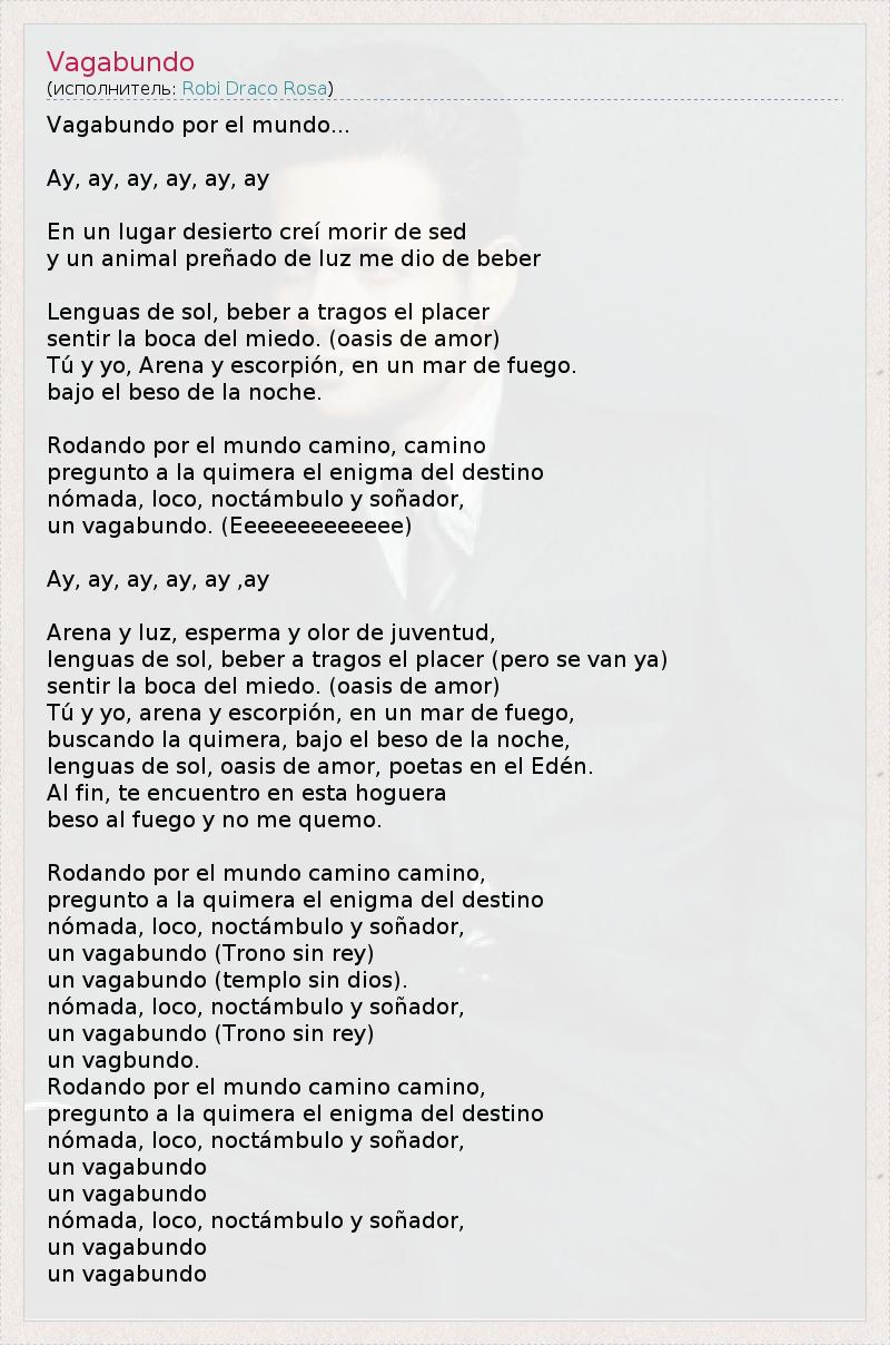А как ты думаешь, о чем песня "Vagabundo" ?
