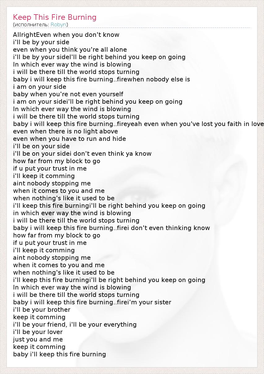 А как ты думаешь, о чем песня "Keep This Fire Burning" ?
