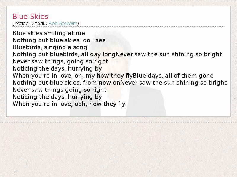 А как ты думаешь, о чем песня "Blue Skies" ?