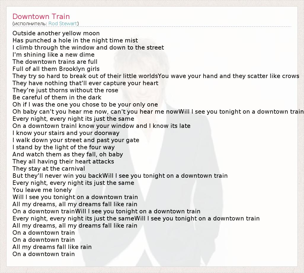 Oh baby can't you hear me now, can't you hear me nowWill I see you tonight on a downtown train