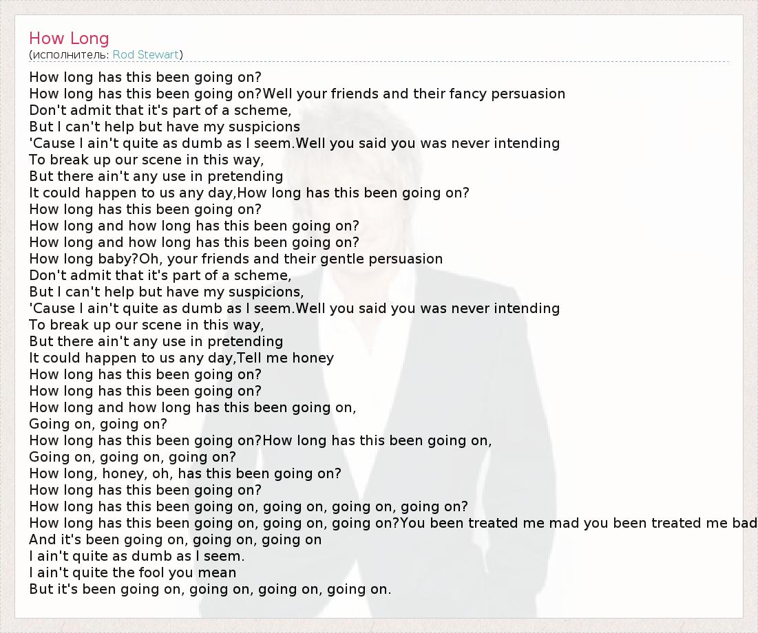 How long has this been going on, going on, going on?You been treated me mad you been treated me bad