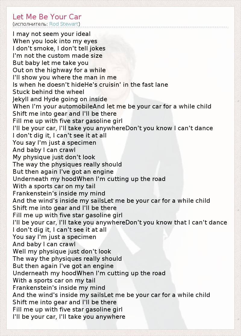 А как ты думаешь, о чем песня "Let Me Be Your Car" ?