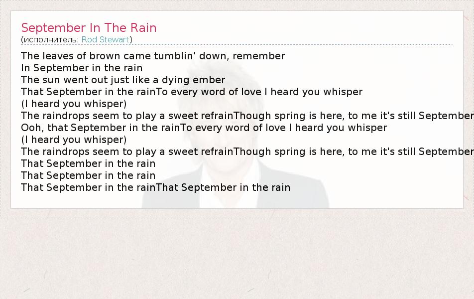 А как ты думаешь, о чем песня "September In The Rain" ?