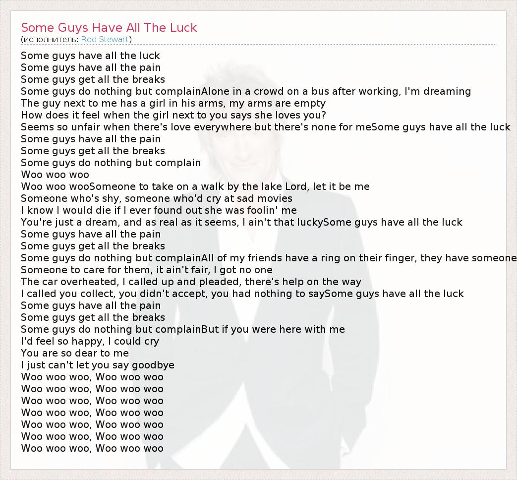 ГлавнаяИсполнителиRod StewartSome Guys Have All The Luck