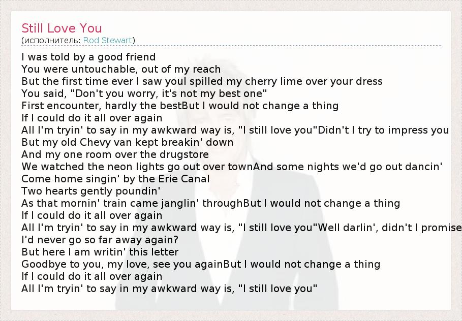 All I'm tryin' to say in my awkward way is, "I still love you"Well darlin', didn't I promise