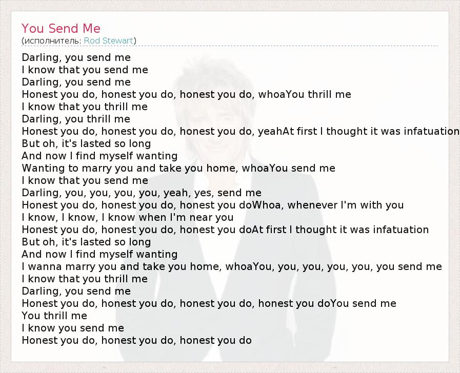Honest you do, honest you do, honest you do, honest you doYou send me