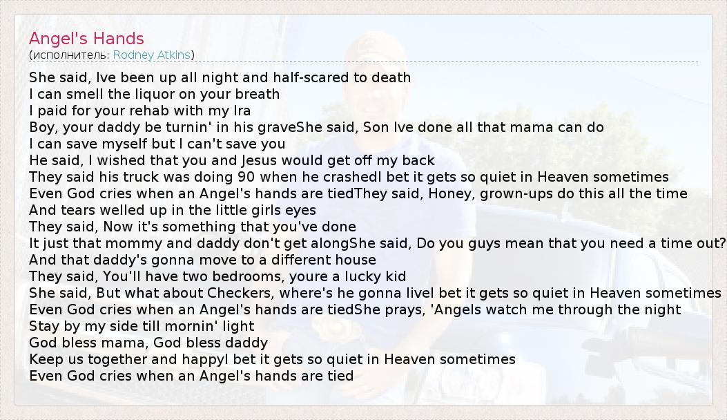 А как ты думаешь, о чем песня "Angel's Hands" ?