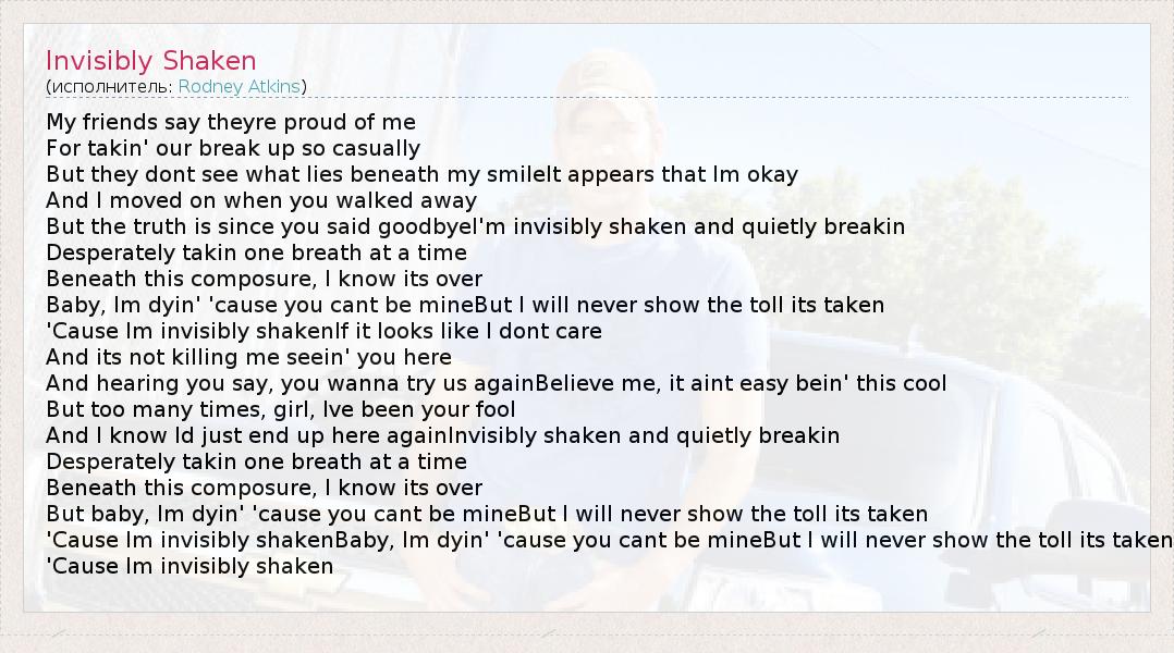 А как ты думаешь, о чем песня "Invisibly Shaken" ?