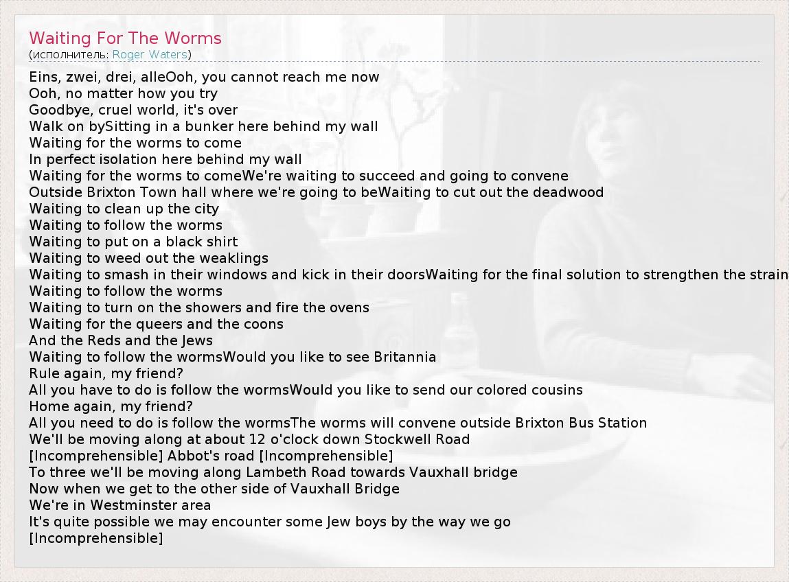 А как ты думаешь, о чем песня "Waiting For The Worms" ?