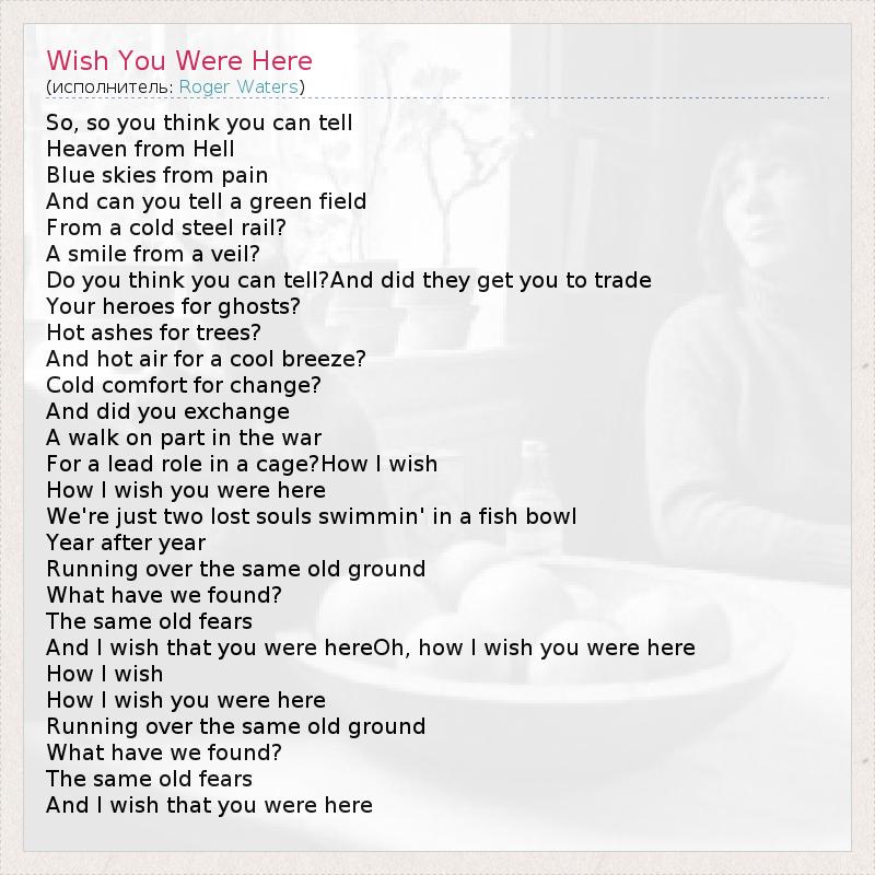 А как ты думаешь, о чем песня "Wish You Were Here" ?