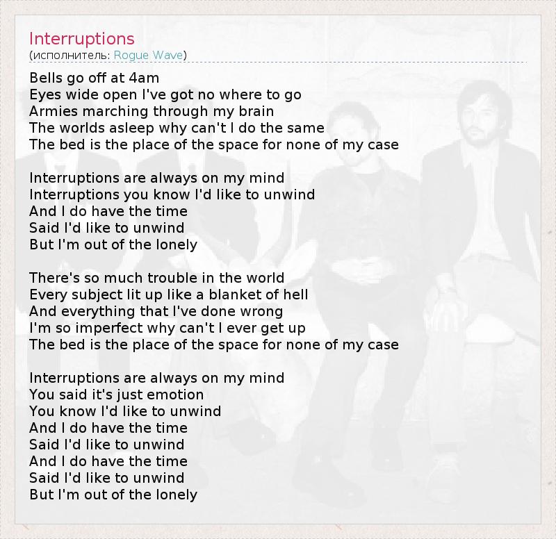 Это интересно:Инди-поп группа «Rogue Wave» была создана в 2002 году Заком Рогом. В 2004 году группа выпустила дебютный альбом «Out Of The Shadow» и «Descended Like Vultures» в 2005. Четырёх парней из Калифорнии часто сравнивают с The Shins. Певец и композитор Джек Джонсон был впечатлён творчеством Rogue Wave. В 2007 году его звукозаписывающая компания Brushfire Records заключила контракт с группой и в этом же году выпустила альбом «Asleep At Heavens Gate».... продолжение