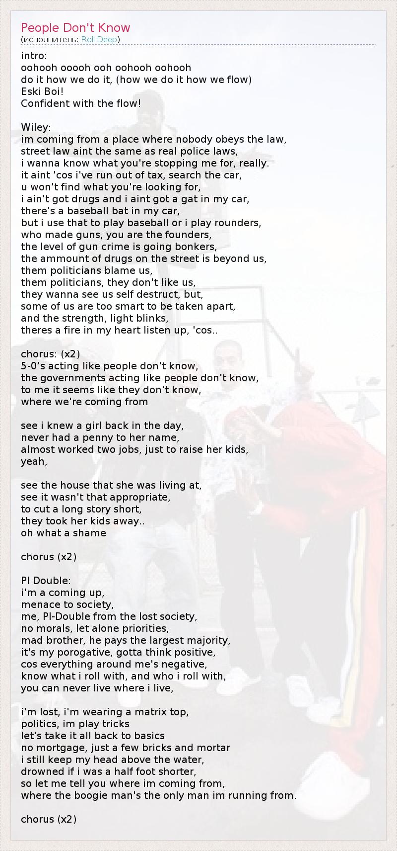 А как ты думаешь, о чем песня "People Don't Know" ?