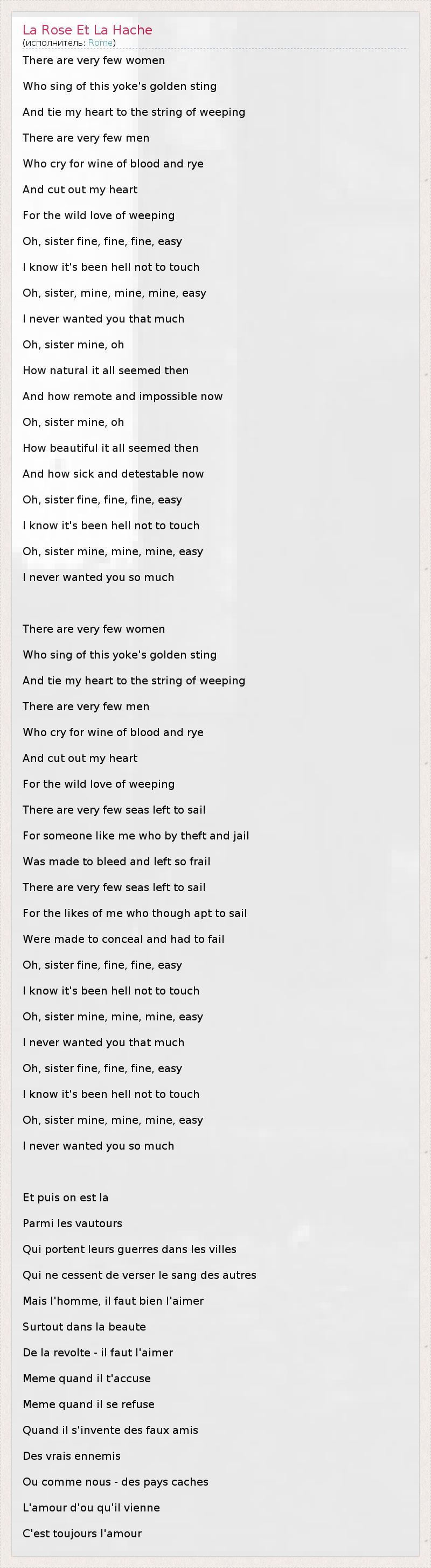 ГлавнаяИсполнителиRomeLa Rose Et La Hache