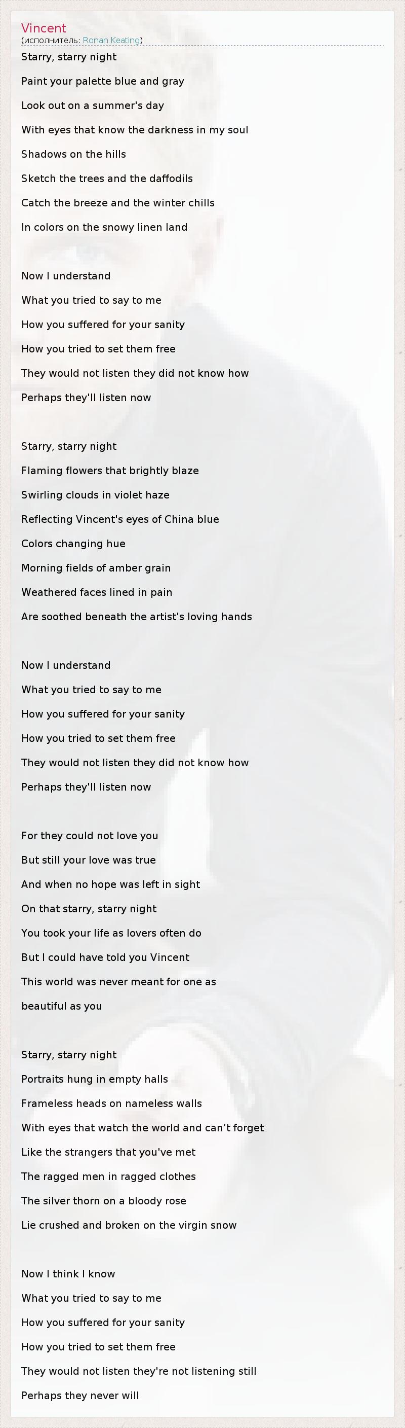 А как ты думаешь, о чем песня "Vincent" ?