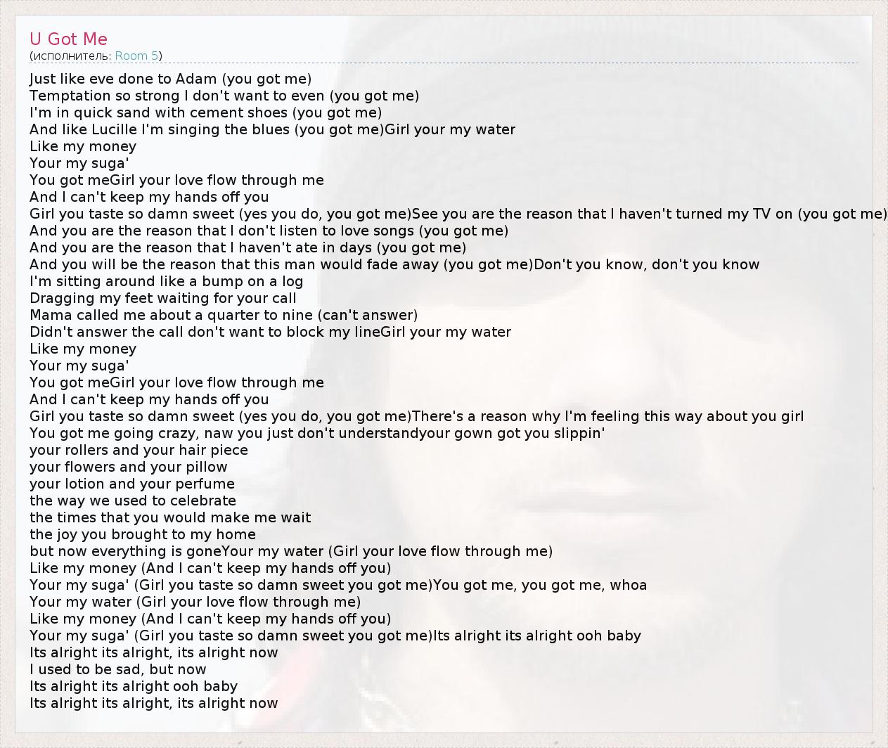 Girl you taste so damn sweet (yes you do, you got me)There's a reason why I'm feeling this way about you girl